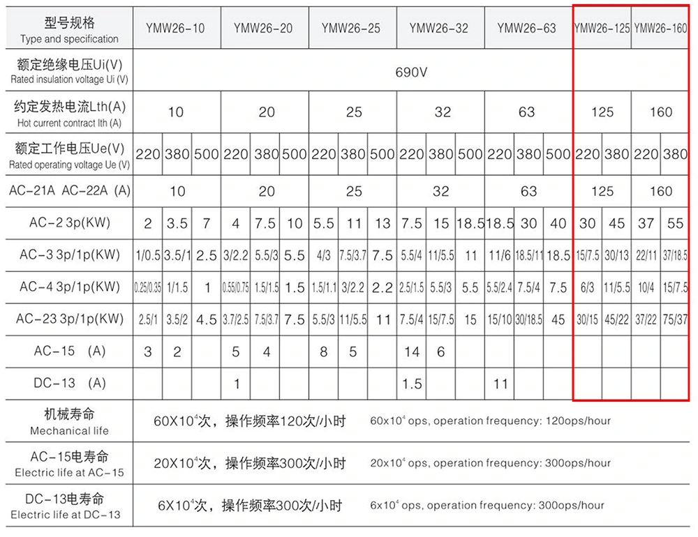 - 정격 매개변수: AC 50Hz/690V 및 DC 240V 회로에 적합하며 정격 전류는 125A입니다.