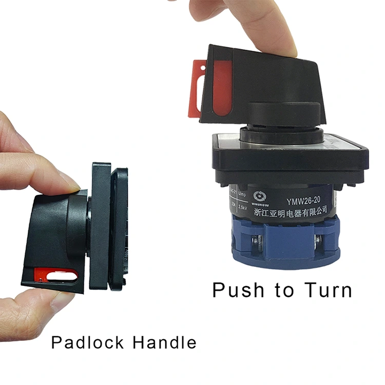 30년 이상의 경험을 보유한 전문 전기 스위치 제조업체인 YAMING은 수십 년의 제조 경험과 기술 혁신을 통합한 걸작인 20A 자물쇠 푸시 제어 로터리 캠 스위치(내부 모델: YMW26-20NS)를 출시합니다. 본 제품은 안전 제어 강화 및 오작동 방지를 위해 설계되었으며 AC 50Hz, 최대 690V 및 DC 240V 회로에 적합하며 최대 20A의 정격 전류를 지원합니다.
