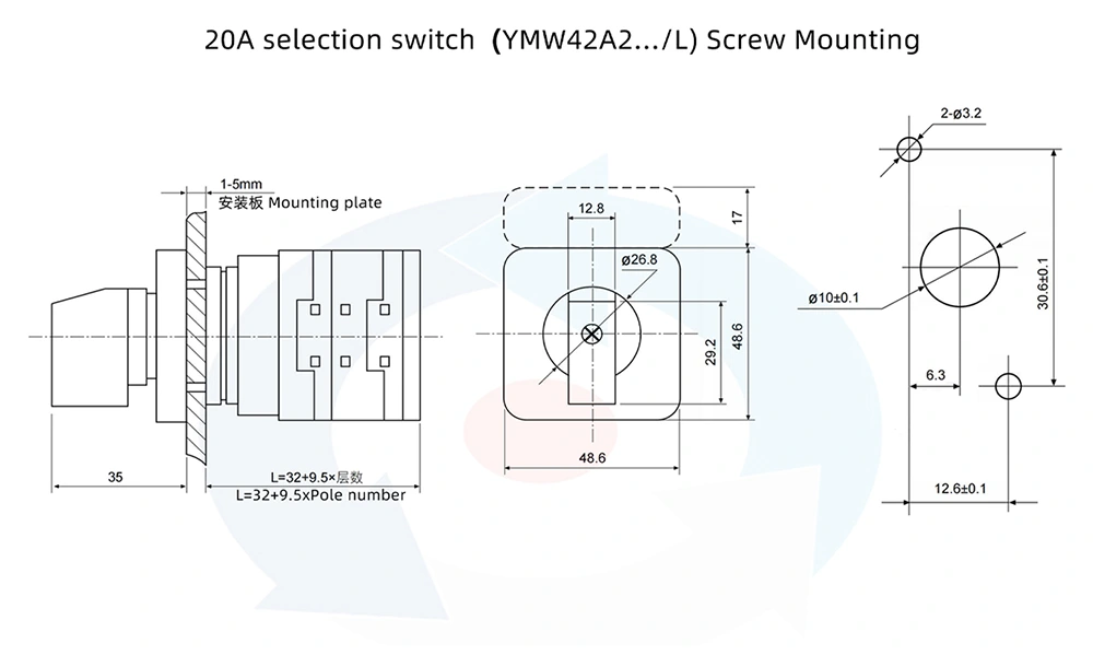 LW42 시리즈 20A 3위치 이중 전원 제어 캠 스위치는 YAMING이 독립적으로 개발하고 생산한 고성능 전기 제어 구성요소입니다. CNC 공작 기계 및 기타 전기 장비의 전기 제어 시스템용으로 특별히 설계되었으며 최대 전압 690V의 AC 50Hz 전원 공급 환경에 적합합니다. 이 제품은 주로 제어, 조명 보호, 신호 및 프로그램 선택은 물론 전압 및 전류 측정 선택을 위한 전기 제어 회로에 사용됩니다.