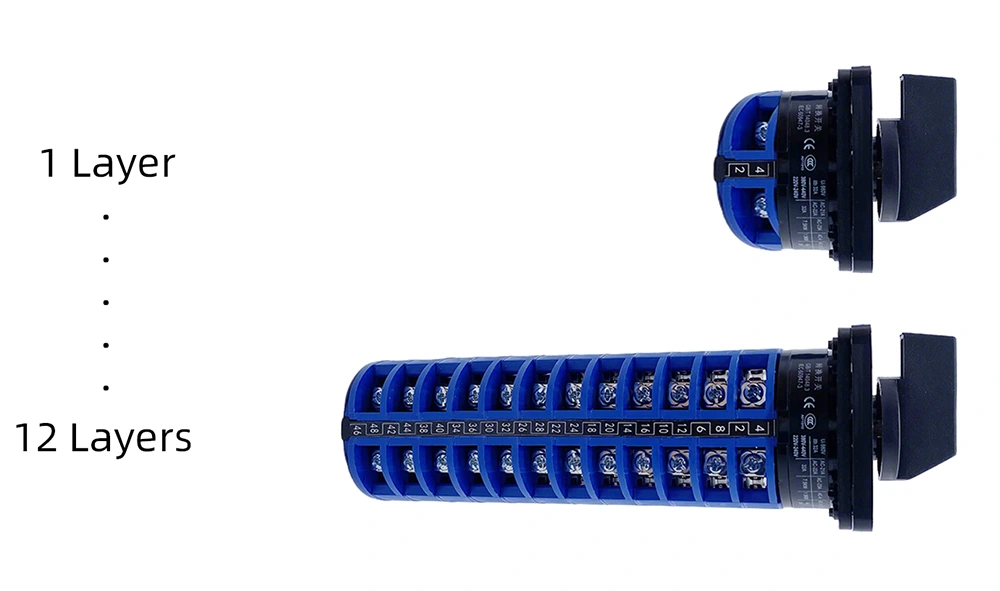 그리고 이 32A 로터리 캠 스위치는 사용자 정의할 수 있습니다(1~12개 레이어):