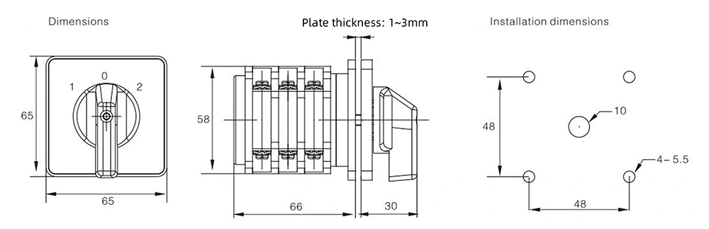32A 3위치 이중 전원 제어 전환 스위치는 작동 모드 및 액추에이터 위치에 따라 분류될 수도 있으며, 다양한 설치 환경 및 사용 요구 사항에 맞게 적용 범위를 더욱 확장할 수 있습니다.