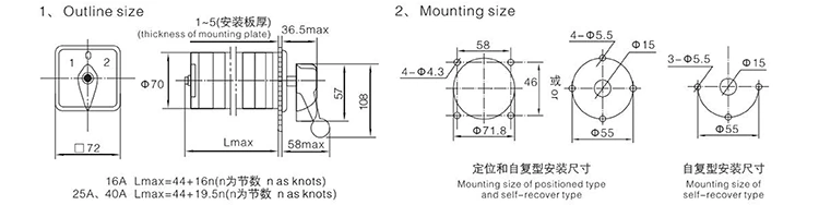 LW5D 40A 손잡이 제어 로터리 전환 스위치의 다양한 배선 요구 사항을 충족하기 위해 외부 연결 플레이트도 지원됩니다. 검정색, 흰색, 빨간색, 노란색 및 파란색과 같은 일반적인 선택을 통해 모든 구성 요소에 대해 색상 사용자 정의가 제공됩니다.