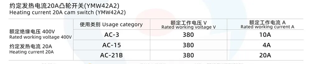 - 20A 캠 스위치: 30°, 45°, 60°, 90°의 위치 지정 각도를 갖추고 있으며 최대 12개의 작동 위치와 1~12개의 스위치 레이어를 지원하여 다단계 및 다채널 제어를 실현할 수 있습니다.
