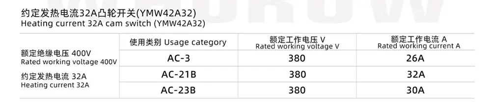 YMW42 시리즈는 20A 및 32A 사양으로 제공되며 정밀하고 안정적인 작동을 보장하기 위해 최적화된 구조 설계를 갖추고 있습니다.